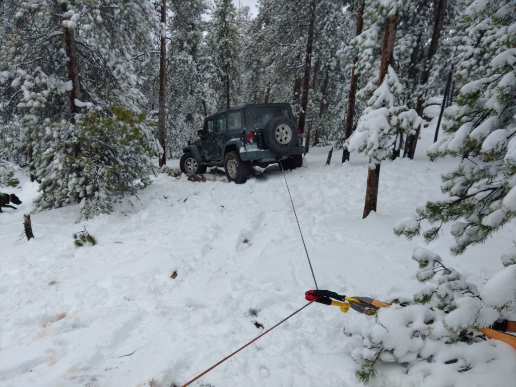 A little redirect with the winch to pull him from between the trees and set up up again from a different angle to pull him out. He was very thankful I showed up.