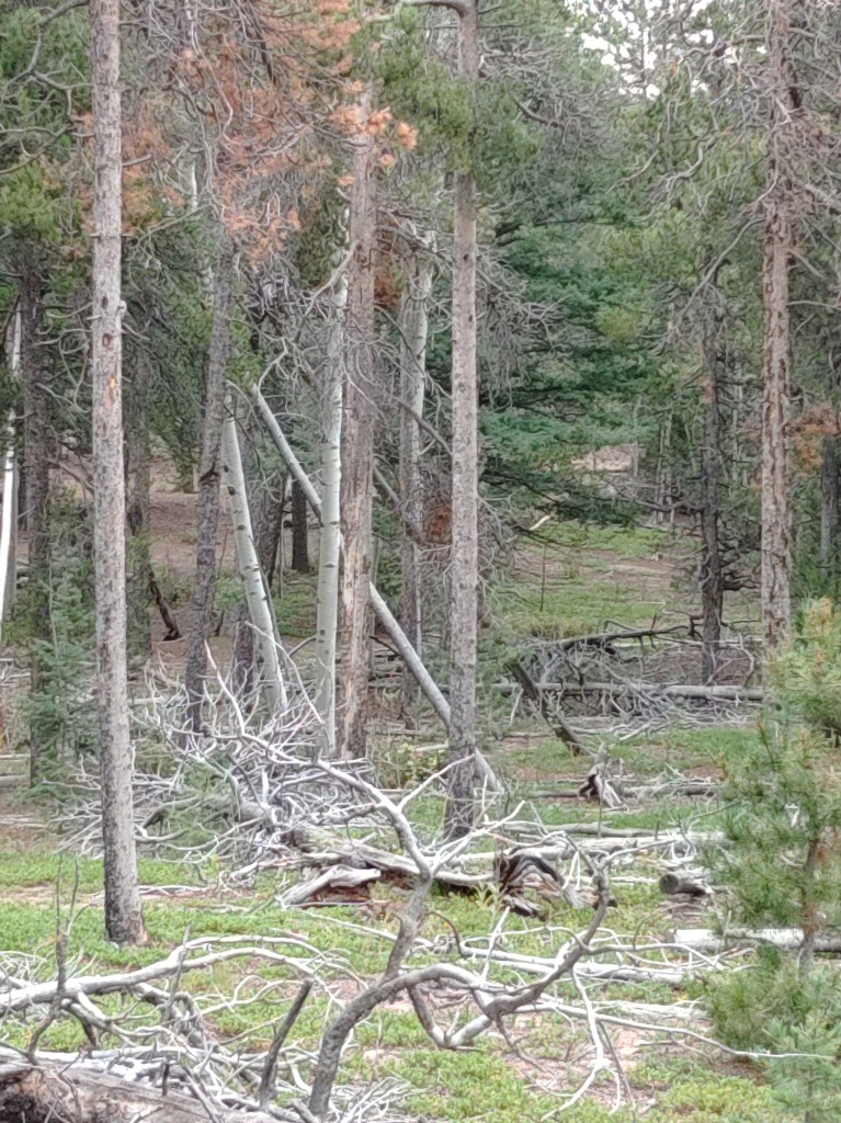 As the rain cleared the sun came out to play. Taking a hike through the woods we discovered a picture-perfect forest that looked like it came from a movie set. There wasn’t a single low branch to tangle in my curly hair. The forest floor was carpeted in a thick layer of pine needles making it soft to walk across. Yet, 50 yards from the pristine forest a completely different sight can be had. Standing on the edge of two forests, one clean and perfect, the other littered and covered in down trees. As I stood there between the two, I decided to travel in both.
