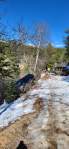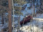 A two-door older model Jeep, known as a TJ to Jeep enthusiasts, rolled off a trail called Chinamans Gulch. The owner called a Colorado Volunteer rescue group to help him recover his Jeep. That group had multiple vehicles break down trying to overcome the first obstacle in the fresh 4 inches of snow. They called off the rescue until the weather subsided.